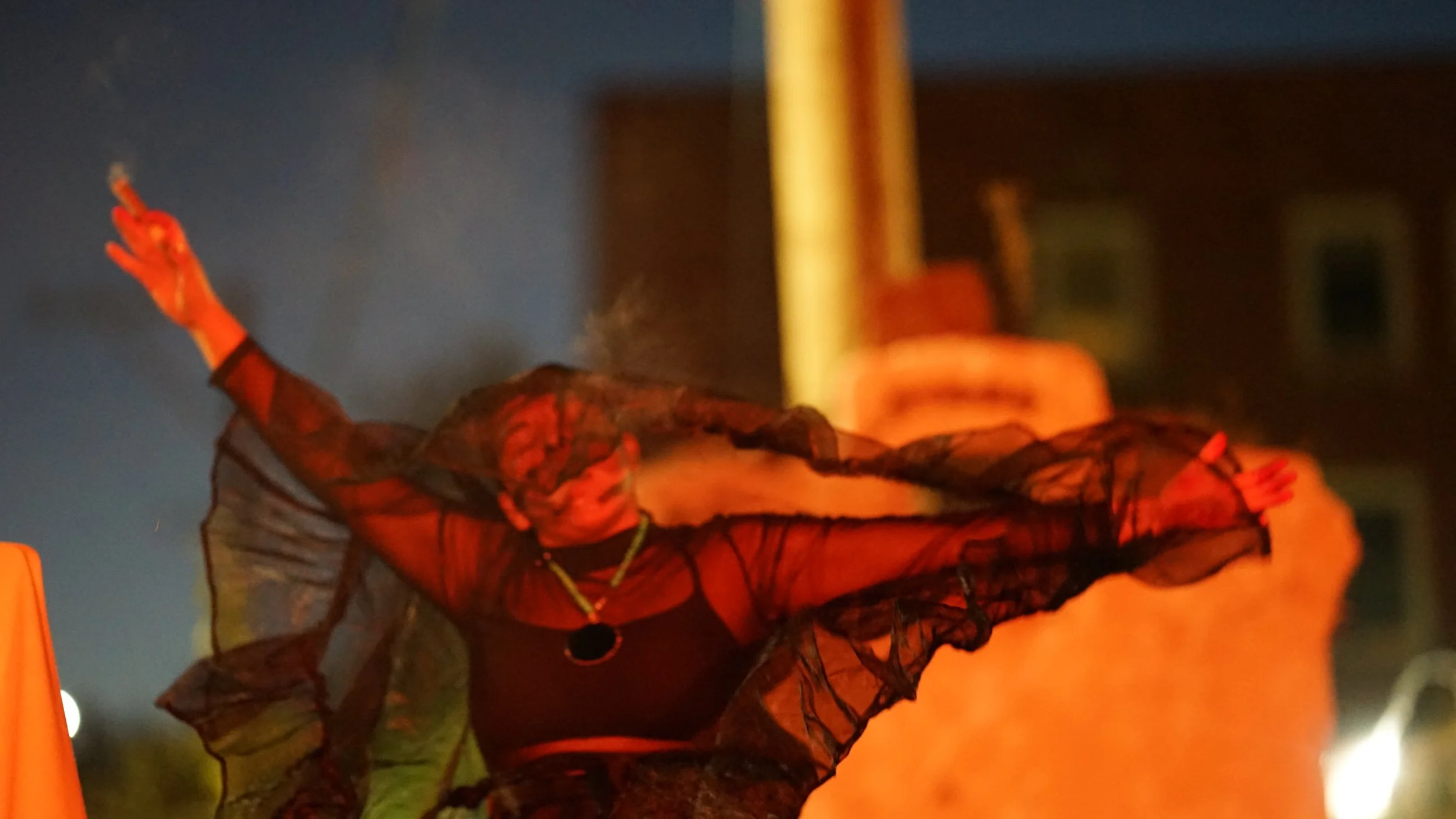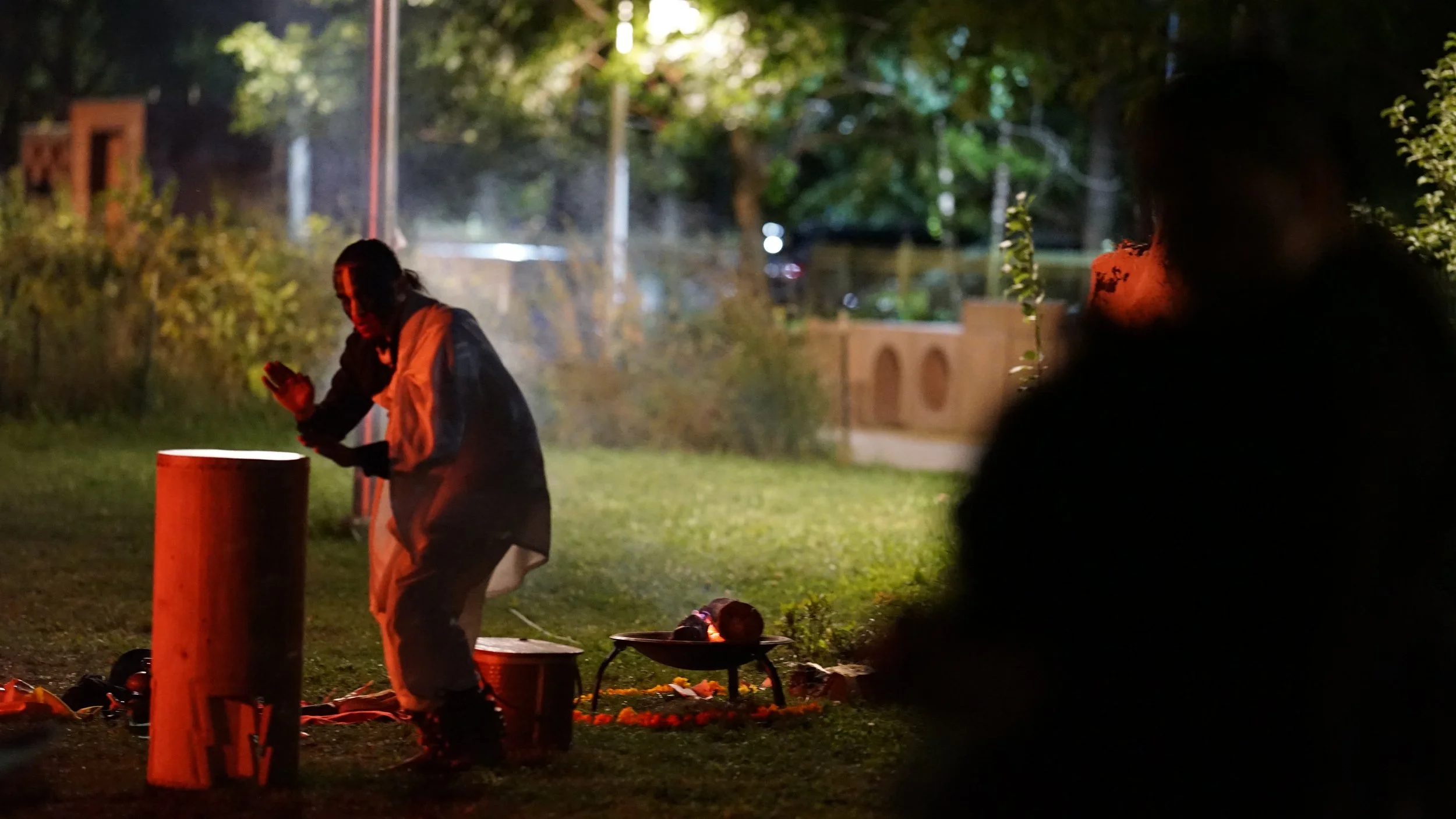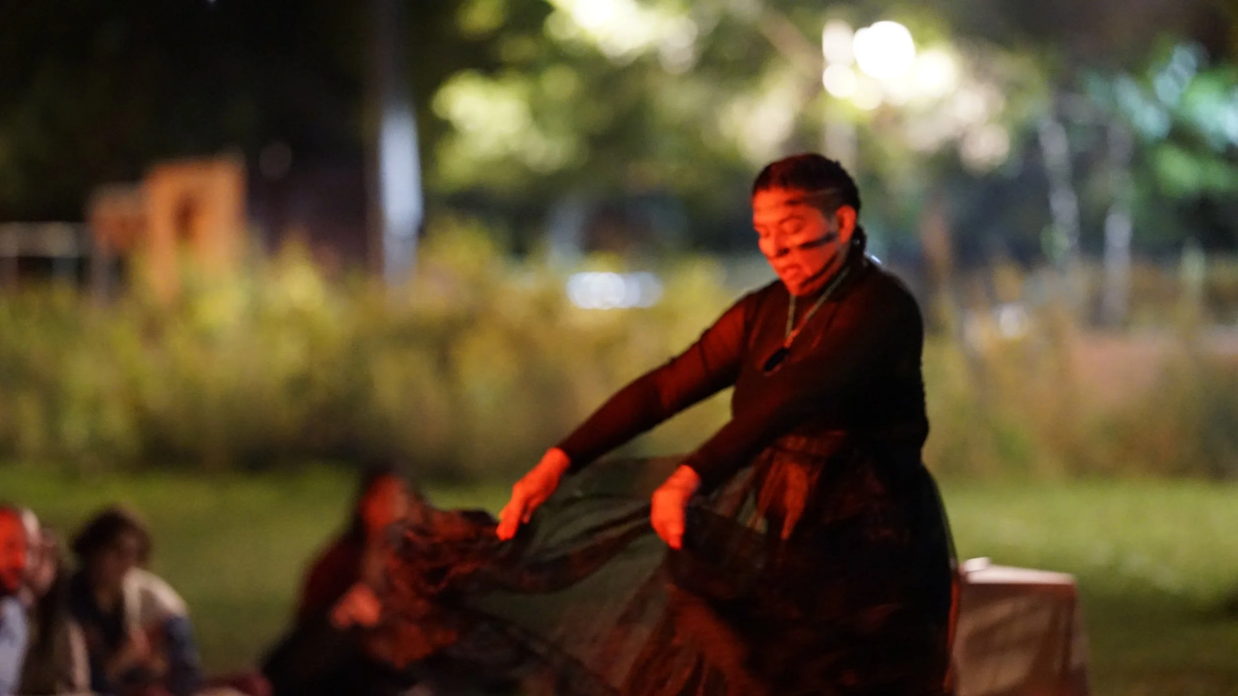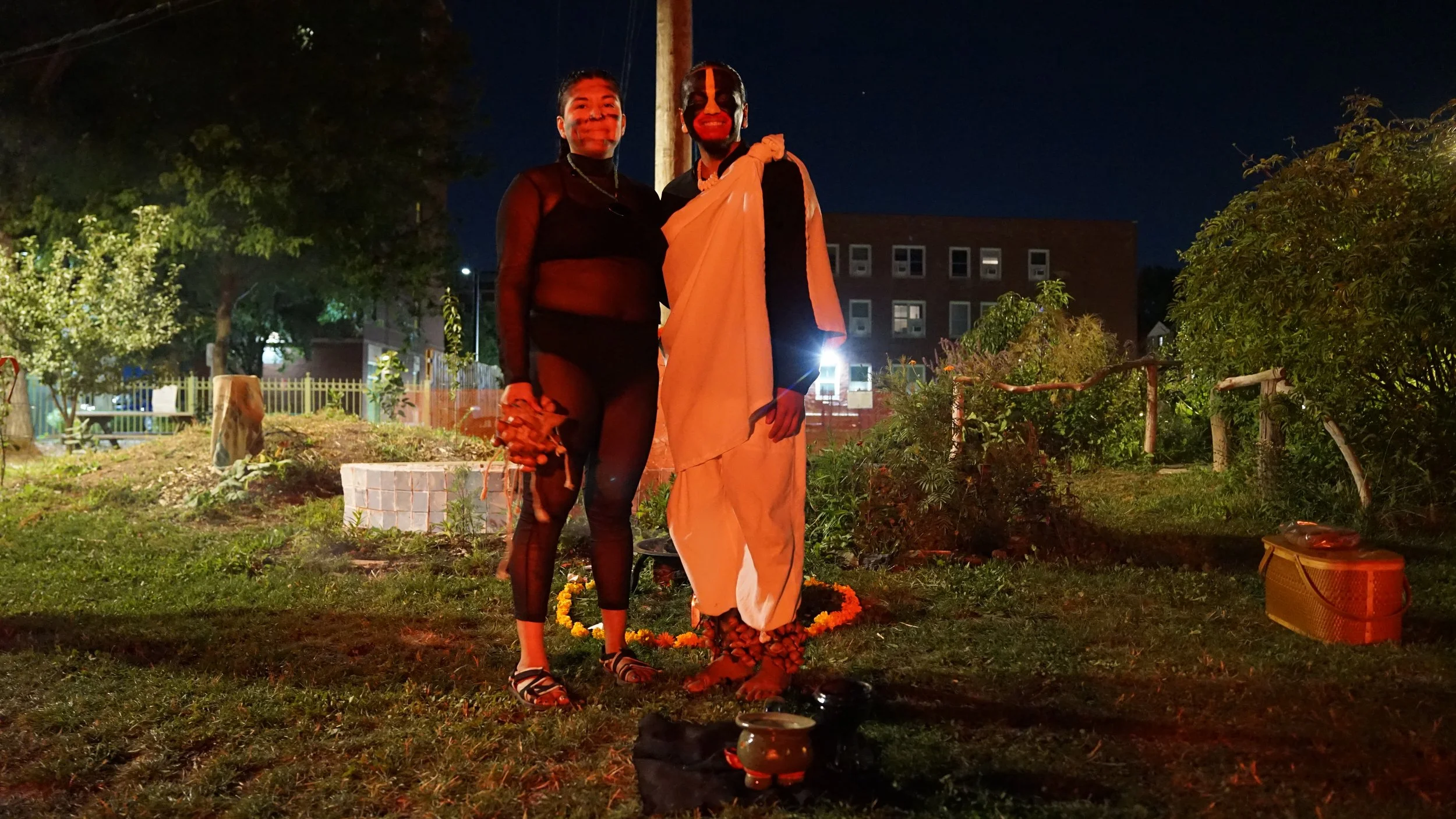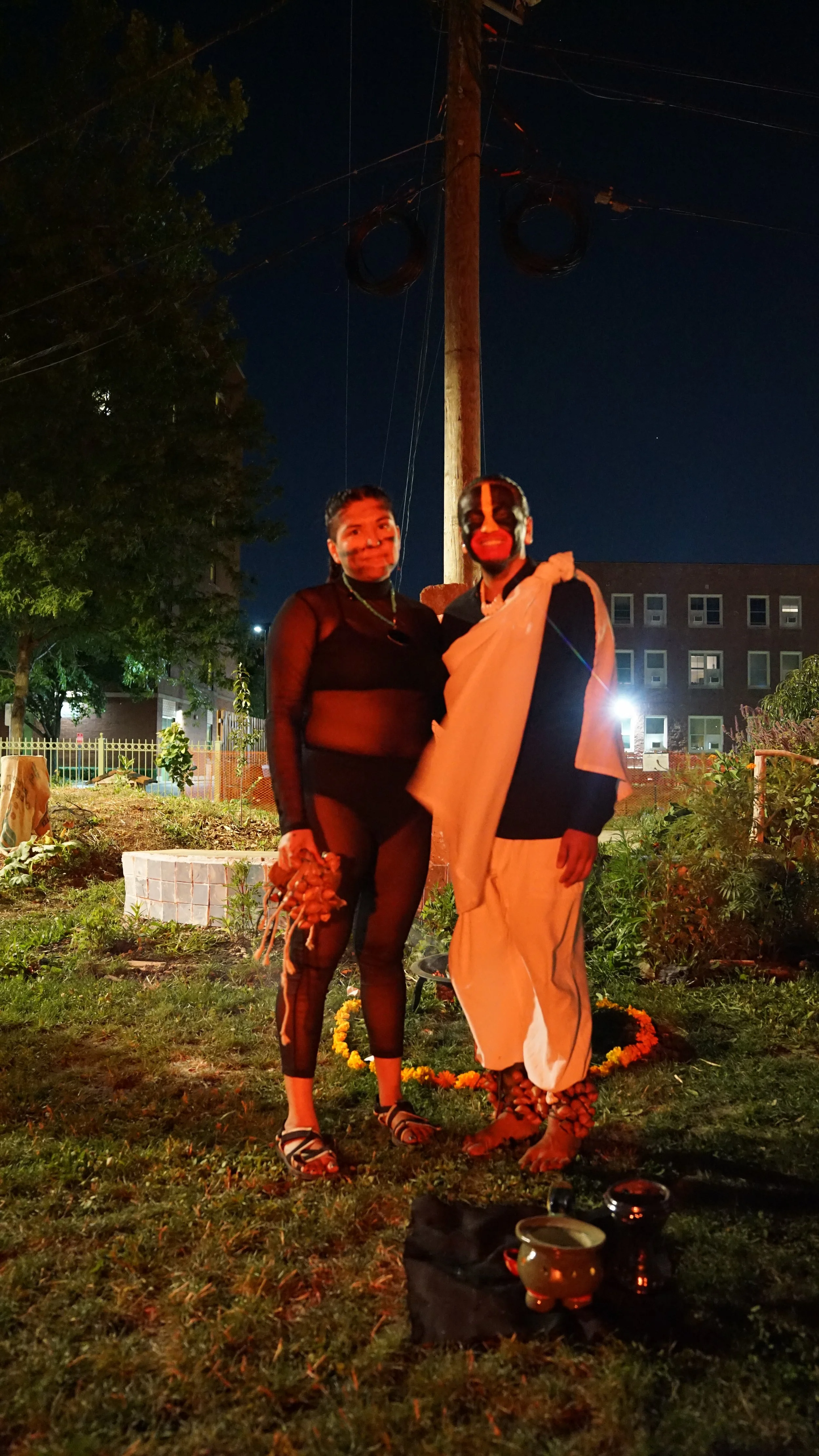 Iyapokatzin; the venerable tobacco smoke, is a collaborative joining of bodily research and desires for a ceremony by Izayo Mazehualli and Marcela Torres. Together Mazehualli and Torres reflect on Mexican Toltec knowledge and Azteka-Chichimeka dance forms, then traverse into Folklorico movement in relation to Revolutionary-era traditionalism. The temporal space we create calls in our natural ancestors who help nourish us: tobacco, fire and smoke. Iyapokatzin; the venerable tobacco smoke premiered over three performances from September-October 2022. Two performances took place in Chicago at El Paseo Community Garden in Pilsen and the Malinalli Garden, a renovated garden in Little Village supported by Mas Maiz Native Land Project and Universidad Popular. A third performance occurred at Franconia Sculpture Park in Minneapolis.