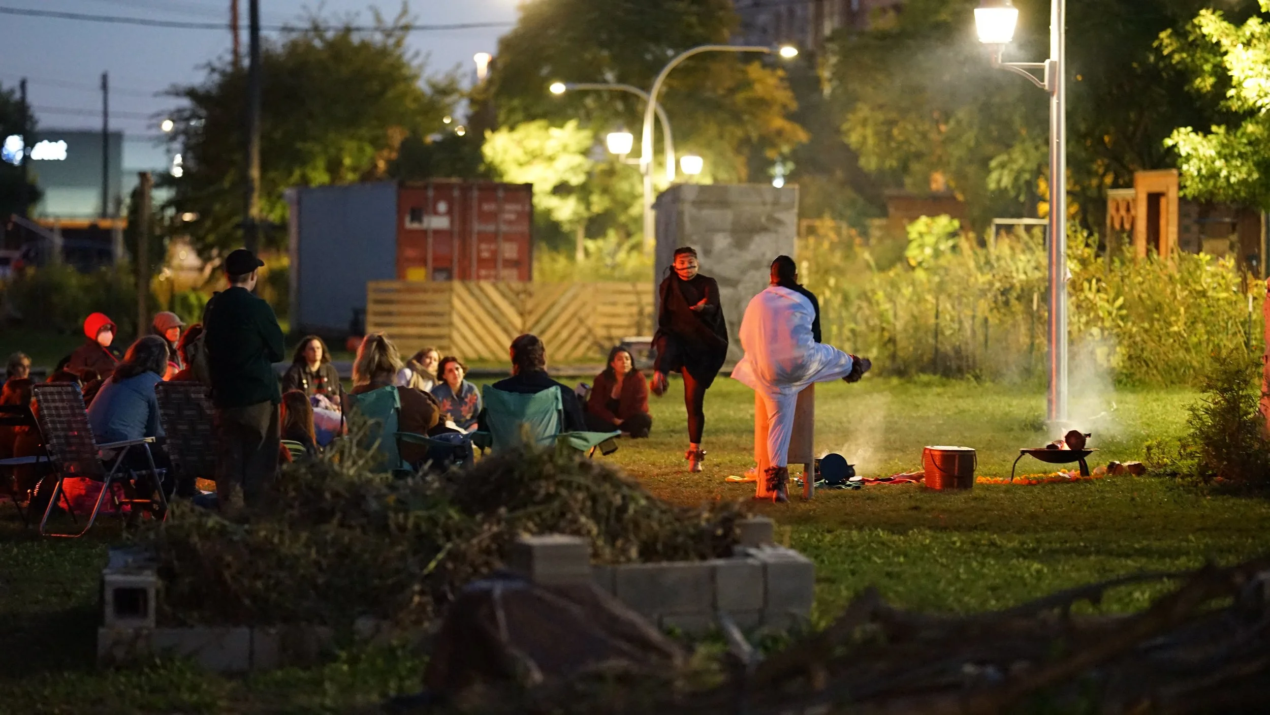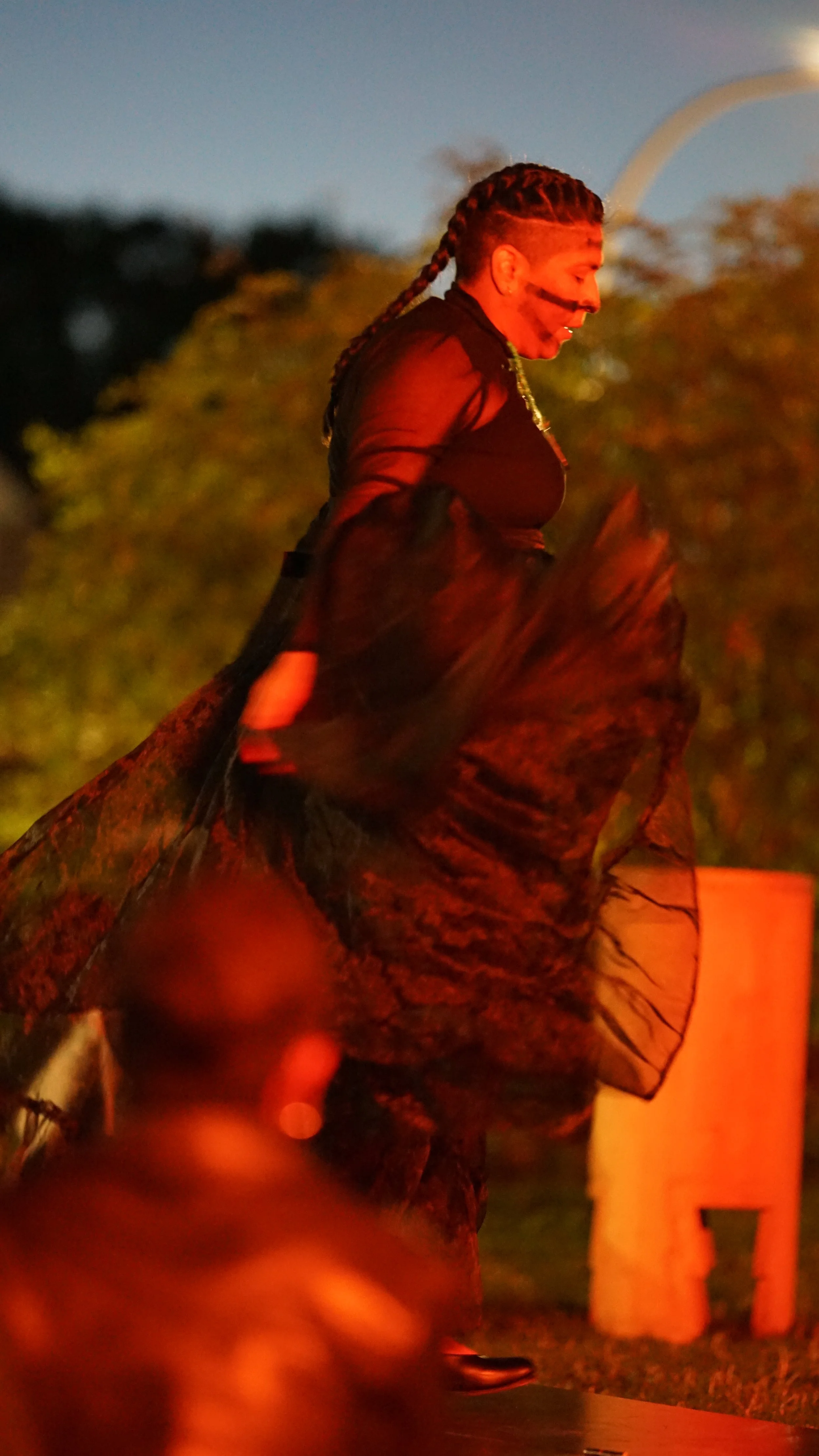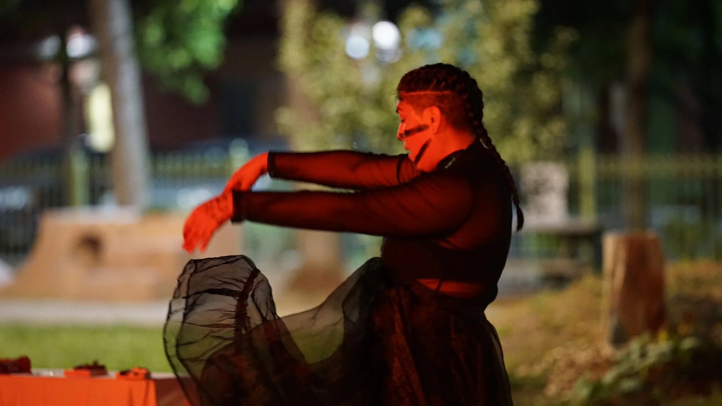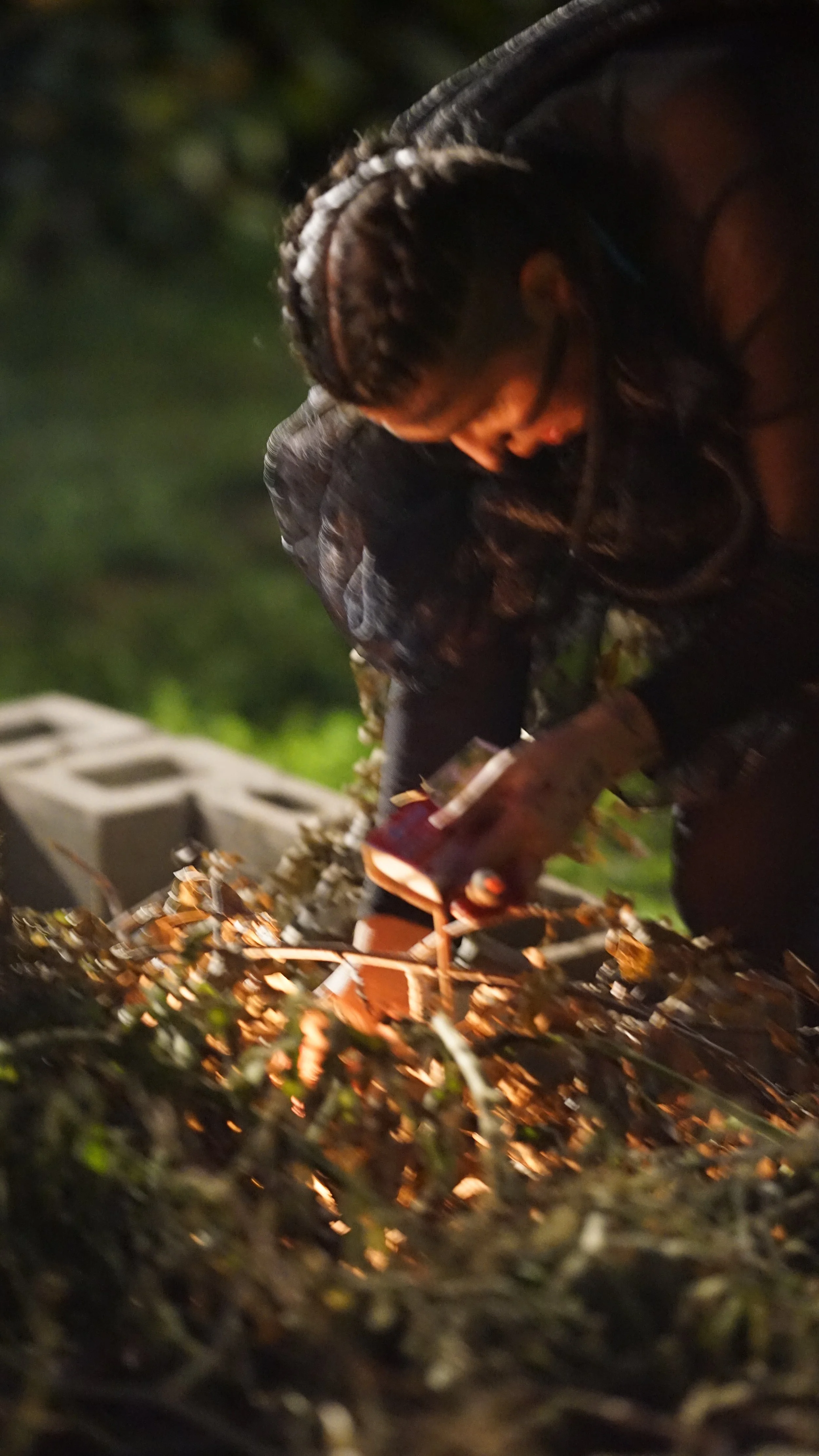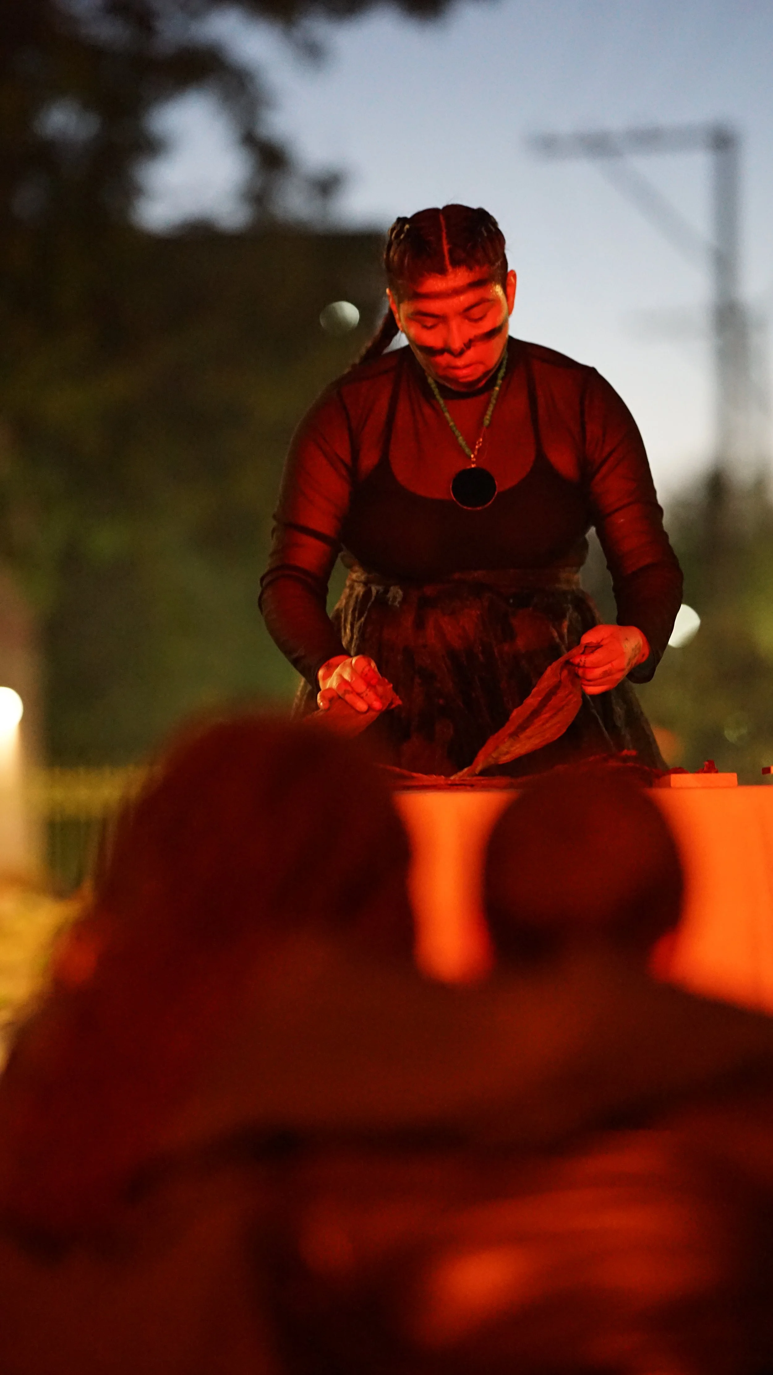 Iyapokatzin; the venerable tobacco smoke, is a collaborative joining of bodily research and desires for a ceremony by Izayo Mazehualli and Marcela Torres. Together Mazehualli and Torres reflect on Mexican Toltec knowledge and Azteka-Chichimeka dance forms, then traverse into Folklorico movement in relation to Revolutionary-era traditionalism. The temporal space we create calls in our natural ancestors who help nourish us: tobacco, fire and smoke. Iyapokatzin; the venerable tobacco smoke premiered over three performances from September-October 2022. Two performances took place in Chicago at El Paseo Community Garden in Pilsen and the Malinalli Garden, a renovated garden in Little Village supported by Mas Maiz Native Land Project and Universidad Popular. A third performance occurred at Franconia Sculpture Park in Minneapolis.
