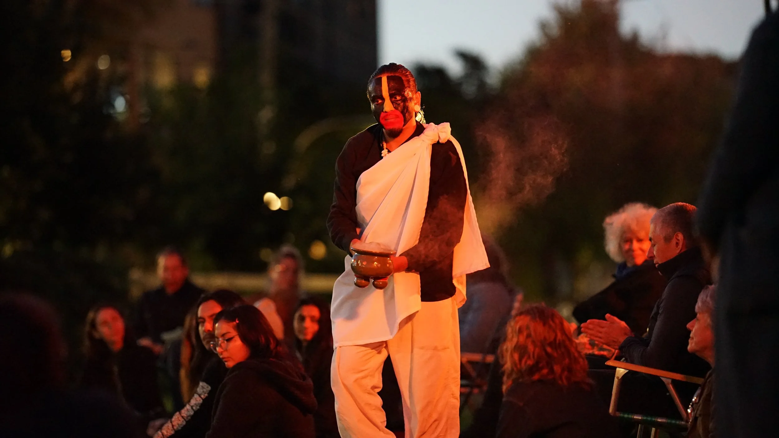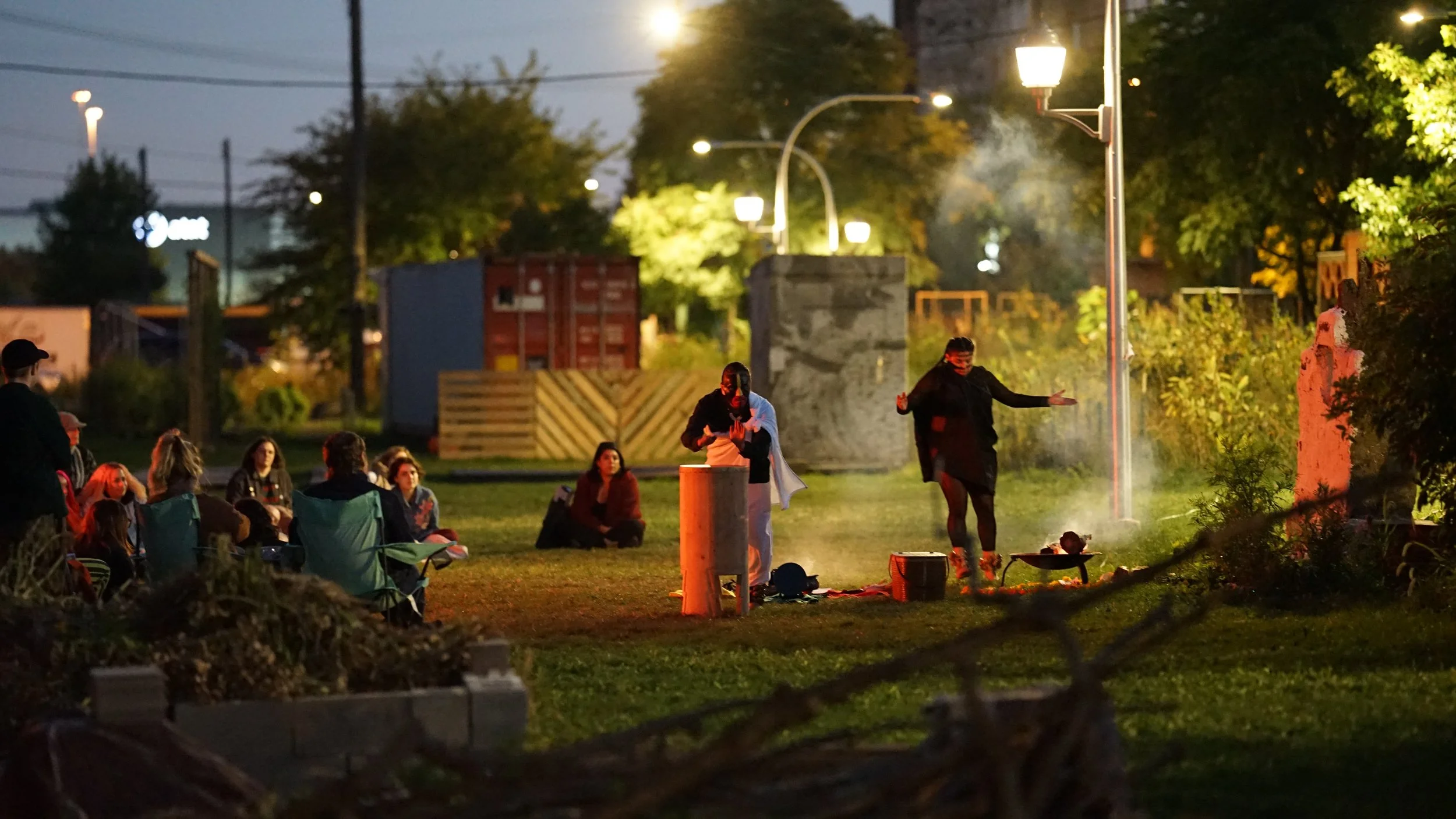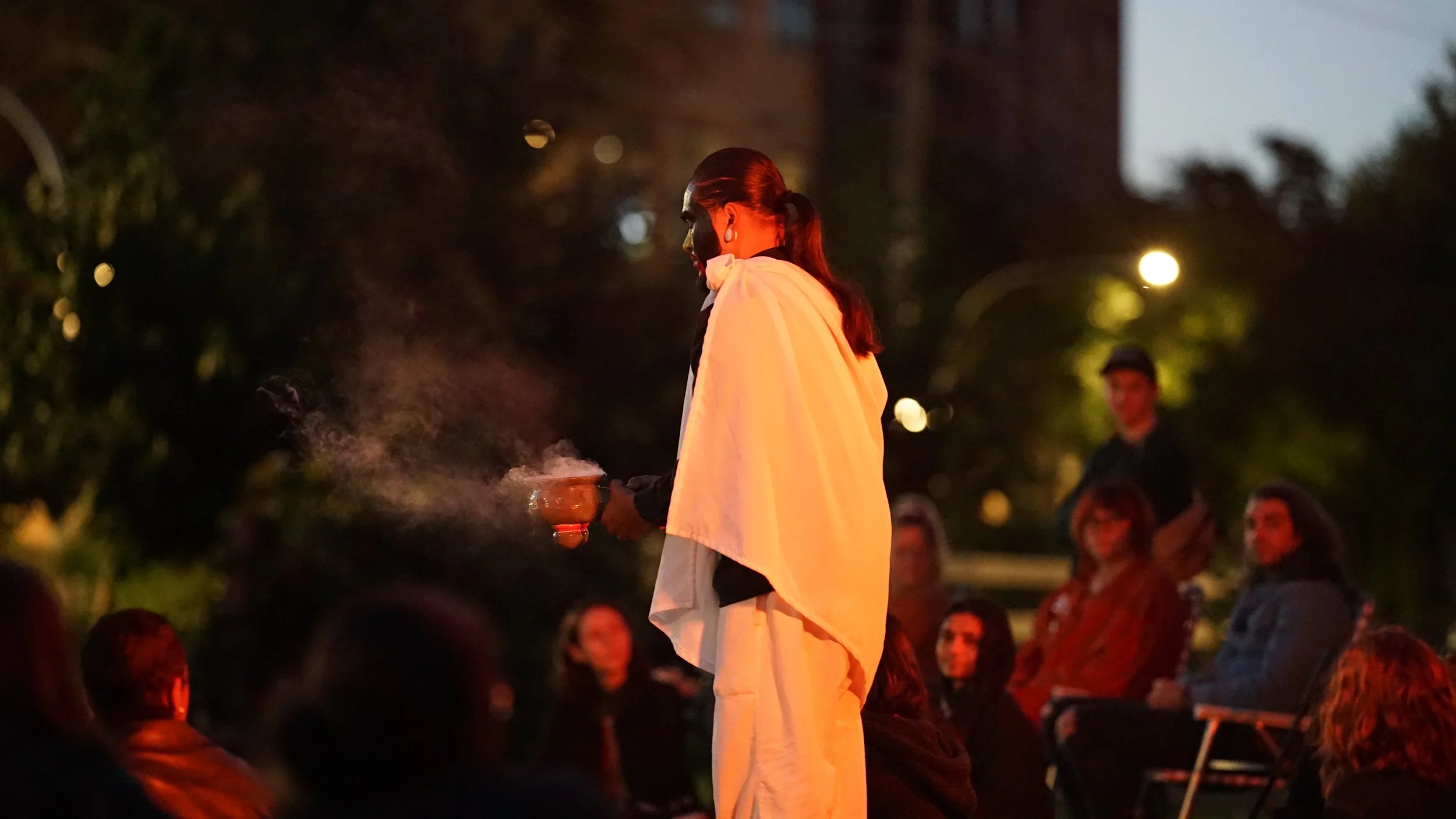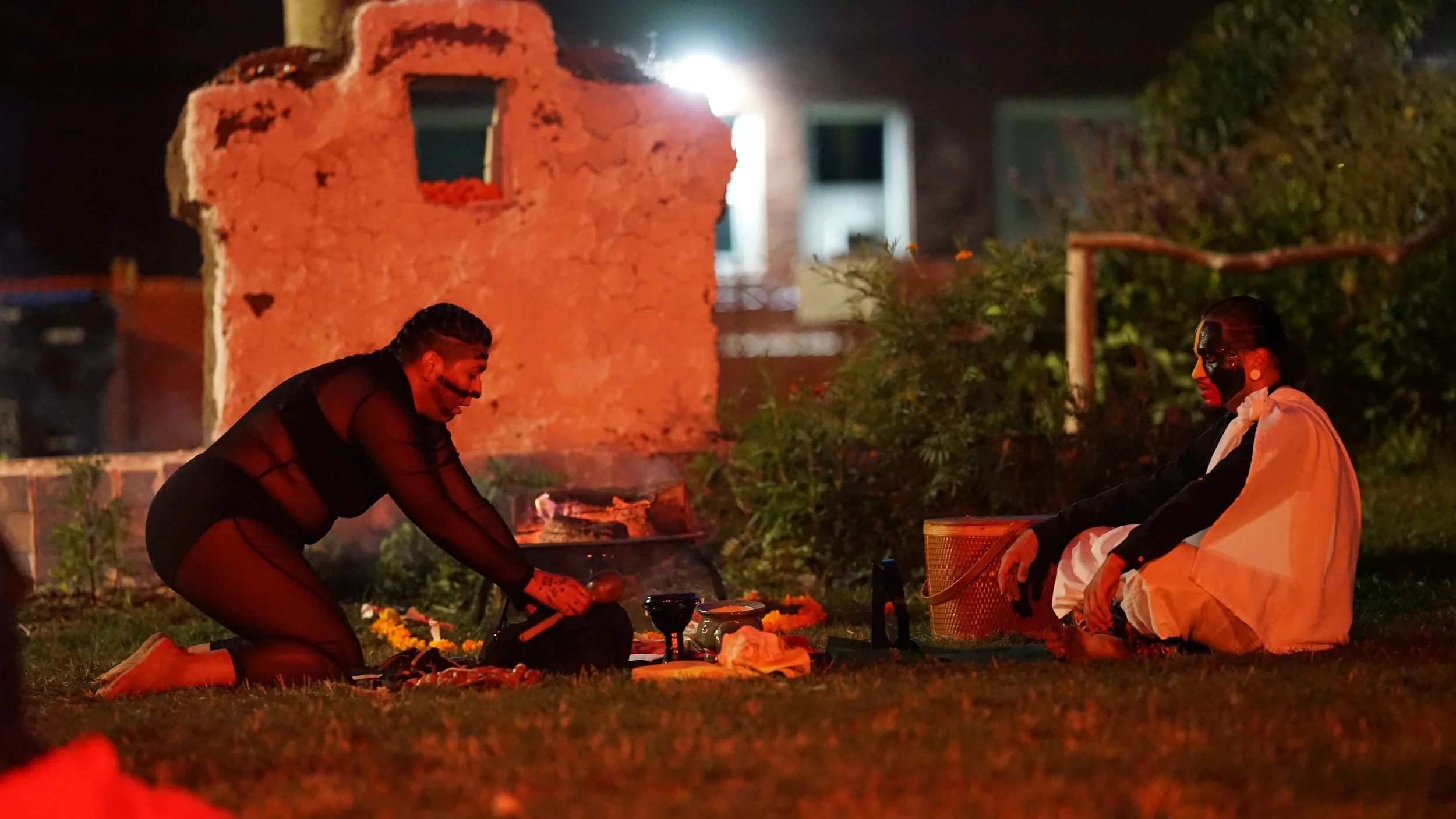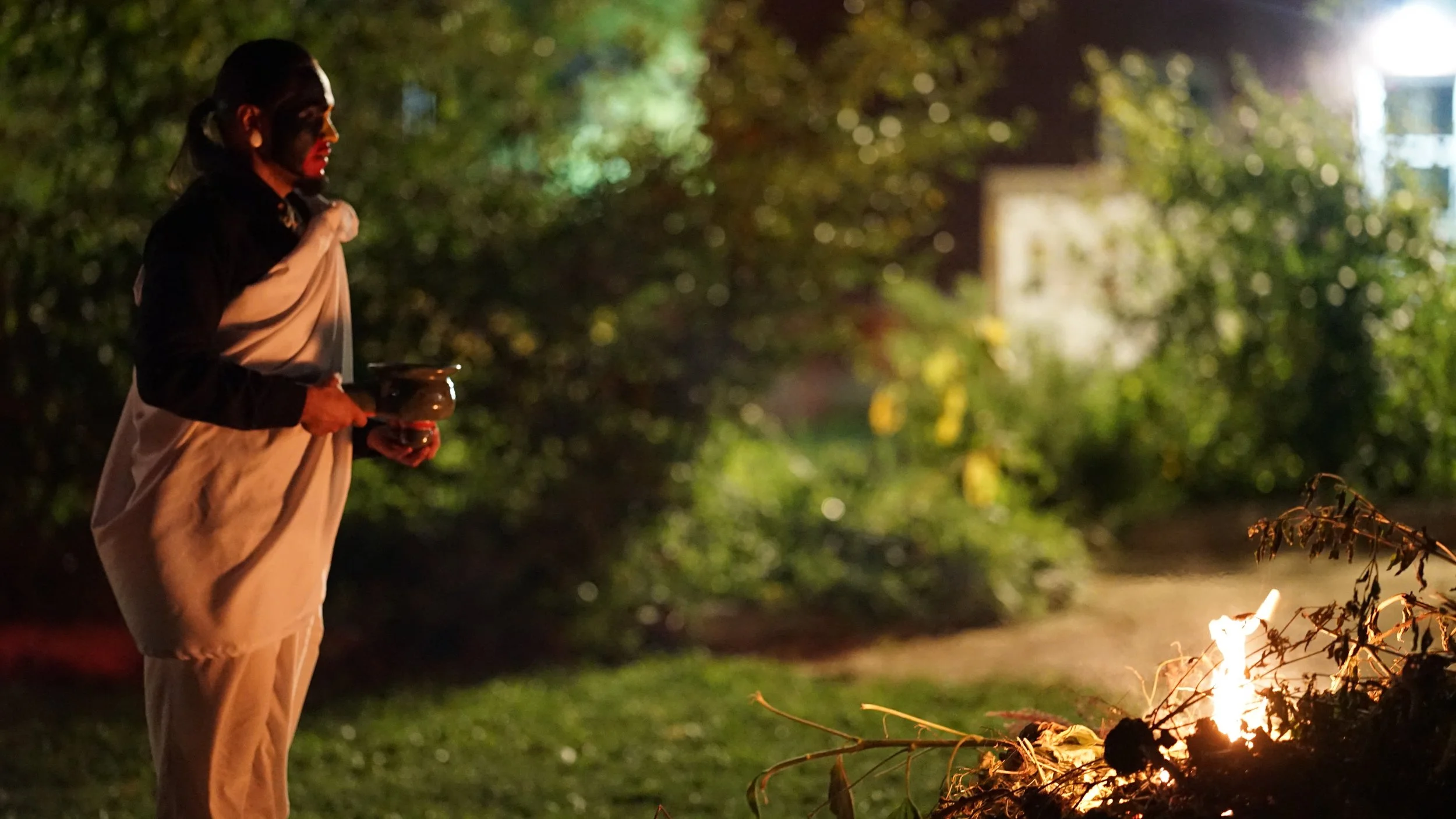 Iyapokatzin; the venerable tobacco smoke, is a collaborative joining of bodily research and desires for a ceremony by Izayo Mazehualli and Marcela Torres. Together Mazehualli and Torres reflect on Mexican Toltec knowledge and Azteka-Chichimeka dance forms, then traverse into Folklorico movement in relation to Revolutionary-era traditionalism. The temporal space we create calls in our natural ancestors who help nourish us: tobacco, fire and smoke. Iyapokatzin; the venerable tobacco smoke premiered over three performances from September-October 2022. Two performances took place in Chicago at El Paseo Community Garden in Pilsen and the Malinalli Garden, a renovated garden in Little Village supported by Mas Maiz Native Land Project and Universidad Popular. A third performance occurred at Franconia Sculpture Park in Minneapolis.